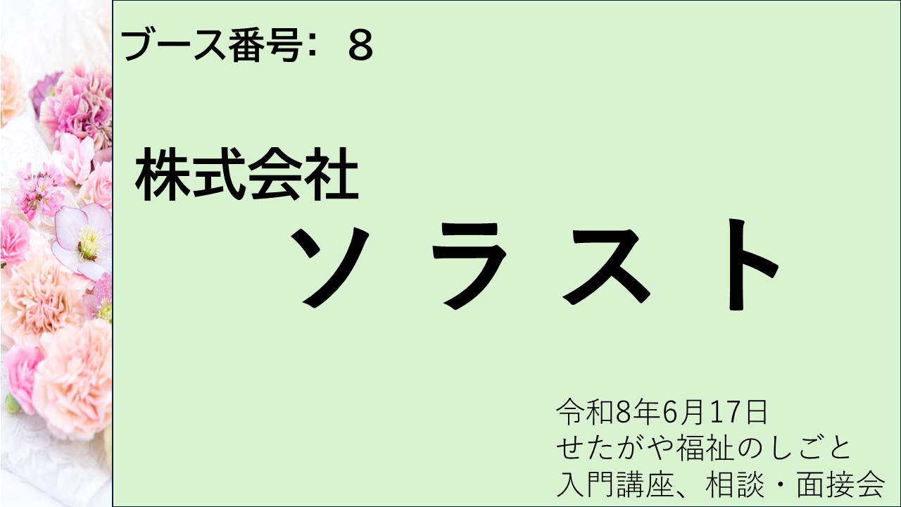 令和8年6月17日(水)に、「成城ホール」で「せたがや福祉のしごと入門講座、相談・面接会」を開催いたします。