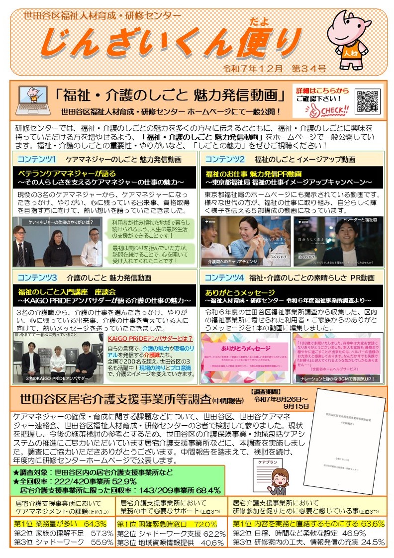 世田谷区福祉人材育成・研修センター広報紙「じんざいくん便り」を発行いたします。
